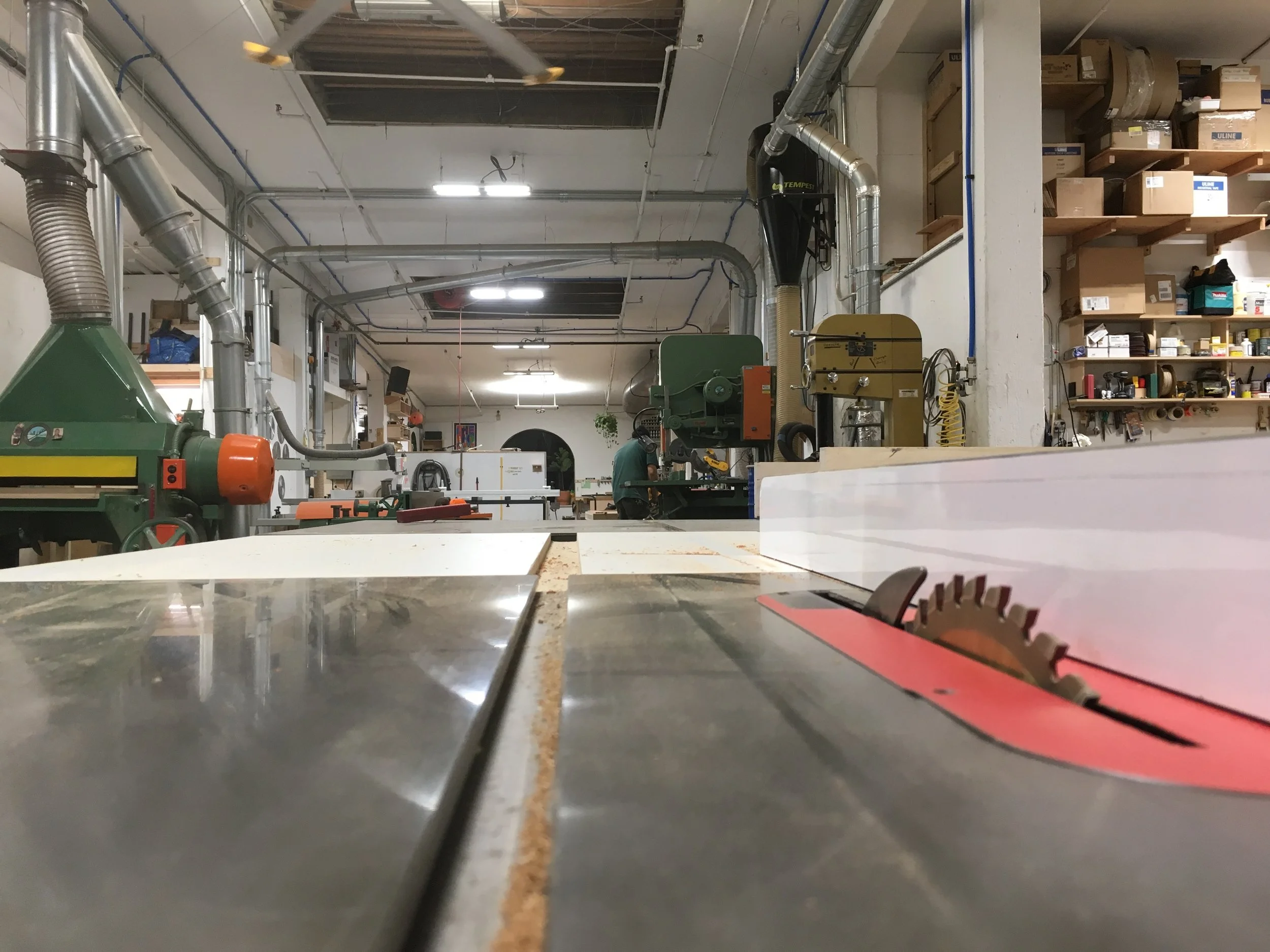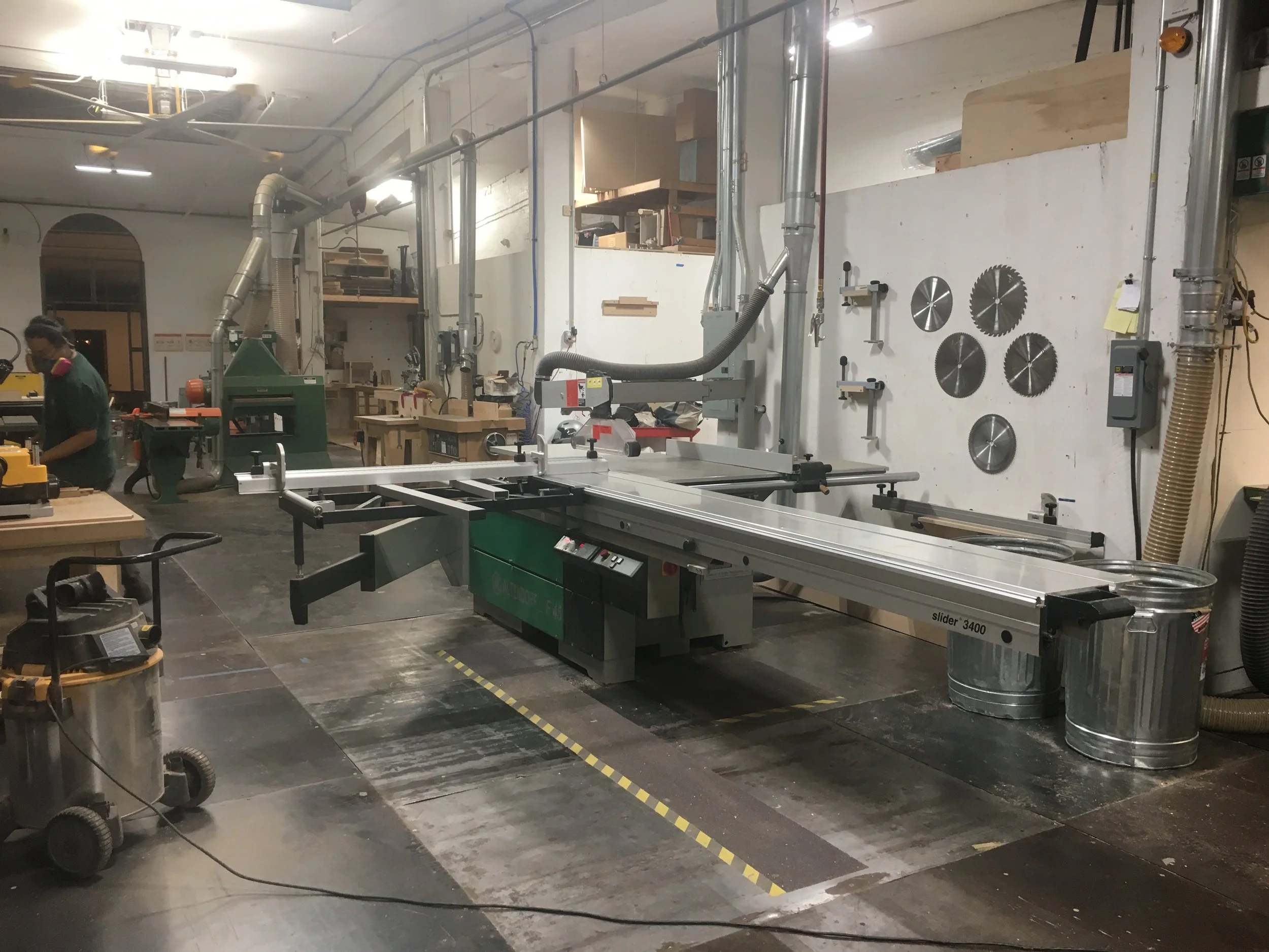 Our equipment includes a planer, jointer and bandsaw from Northfield Woodworking Machinery, the sole remaining U.S.-based manufacturer of industrial woodworking equipment. We also have an Altendorf F45 sliding table saw from Germany in addition to an array of drill presses, a lathe, sanding machinery, and an extensive dust collection system.
